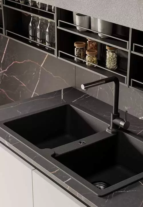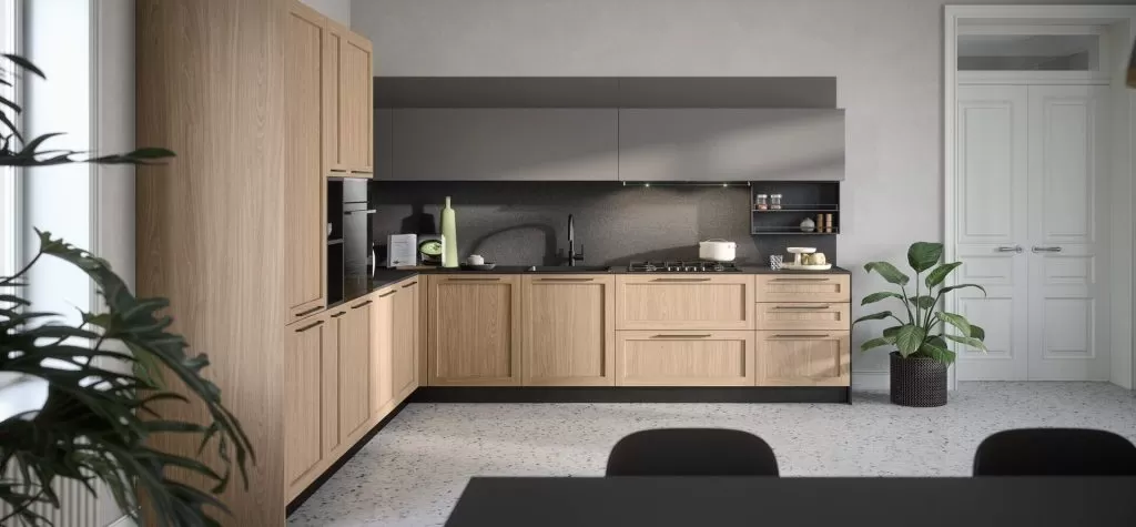 La cucina nera moderna è una scelta di carattere: elegante, decisa, spesso molto scenografica. Le cucine nere modernedanno il meglio in ambienti ben illuminati o in open space, dove il nero può diventare un elemento architettonico che definisce lo spazio. Per mantenere equilibrio e non appesantire, si lavora su contrasti: top chiari, inserti materici, vetrine o dettagli metallici. In alternativa, le tonalità grigie offrono un’impronta contemporanea più versatile: una cucina moderna grigia può essere infatti minimale e sofisticata, oppure più materica, a seconda della finitura scelta.